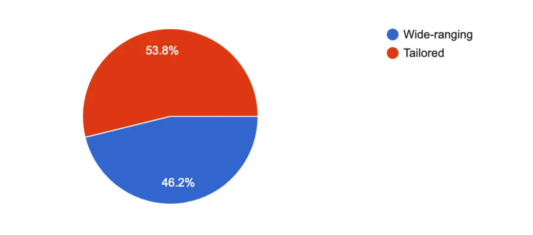 The choice to focus on a curated experience was supported by the survey as well: when asked if they would prefer an app that provided wide-ranging content or a tailored experience, the majority of users selected tailored.